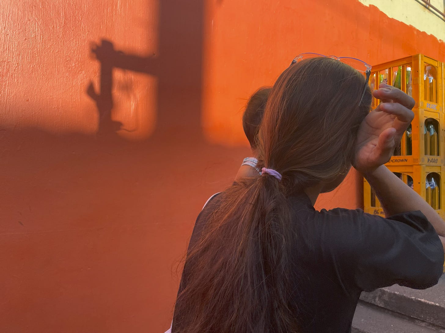 Inside, the atmosphere is palpably different from the congestion just beyond its walls. Despite the aging façade, the interior is calm and alive. Paint covers the walls wherever paint rollers could reach, bringing color to the dynamic surfaces. Wide hallways that double as balconies covered with plants, lights, posters, and laundry. Light spills in, and shadows cut through the space into the courtyard. There’s a tree in the middle of the courtyard, perhaps a Dita.